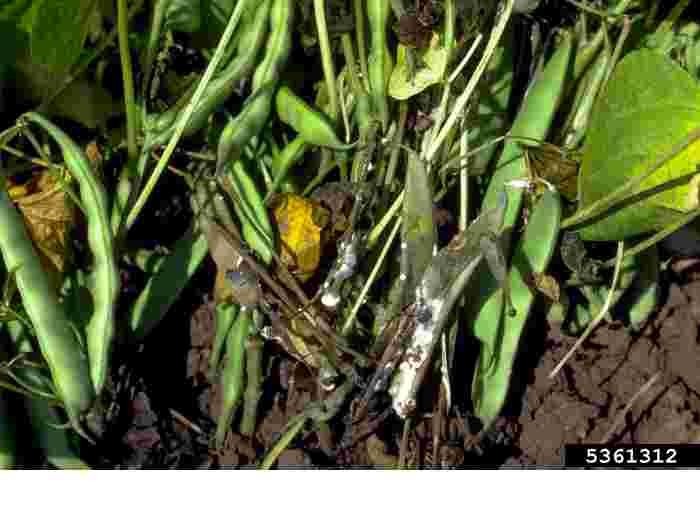 Une pourriture molle avec un feutrage cotonneux blanchâtre apparait sur les tiges, les pétioles et les gousses du haricot. Des sclérotes blancs puis noirs apparaissent à l’intérieur des tiges et des gousses. Lorsque ces sclérotes se trouvent en contact direct avec les racines, elles peuvent générer la formation d’une pourriture molle au niveau de la base de la tige ou du collet pouvant, en cas d’expansion importante, entrainer la mort de la plante.