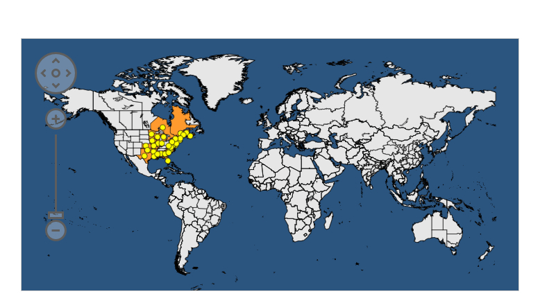 Le scolyte américain du chêne est originaire de la côte est de l’Amérique du nord (Etats-Unis, Canada) et n’a pas colonisé d’autres territoires jusqu’alors.