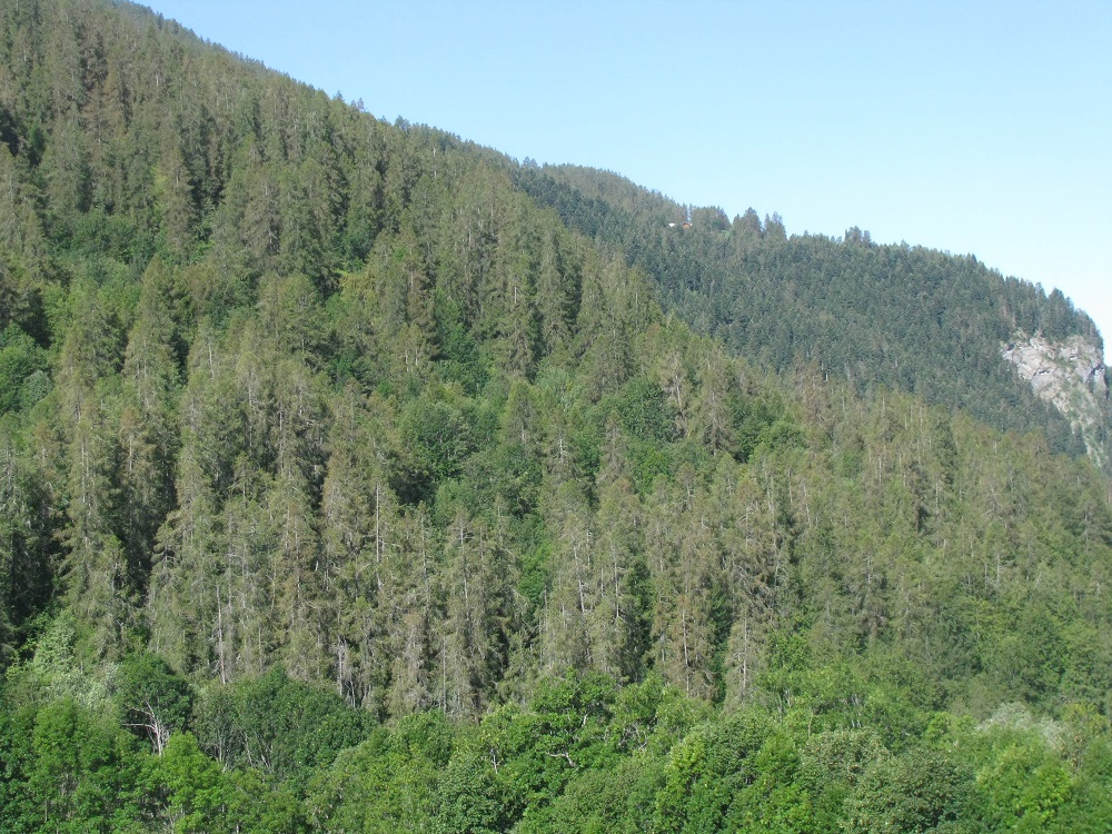 - Maladie qui touche la partie inférieure du houppier, les aiguilles de la cime restent souvent vertes (Firgure 8)