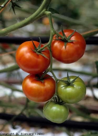 L'expression des symptômes semble fortement influencée par les conditions climatiques, en particulier par la température et la luminosité dans les abris. Ainsi les symptômes sont-ils facilement observés de l'automne jusqu'au printemps, et ont tendance à disparaître en périodes chaudes et lumineuses. La maladie s'exprime différemment en fonction du stade de développement de la plante et du cultivar. Signalons qu'elle peut passer totalement inaperçue, malgré l'infection de nombreuses plantes, ou se manifester sur une strate de feuilles et de fruits.