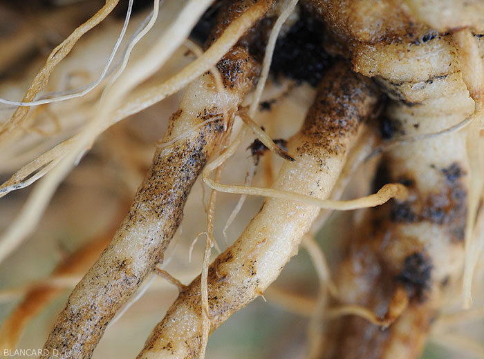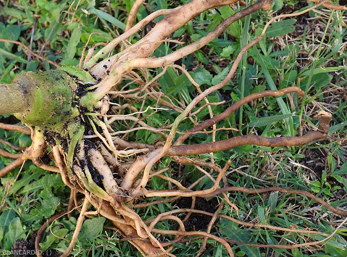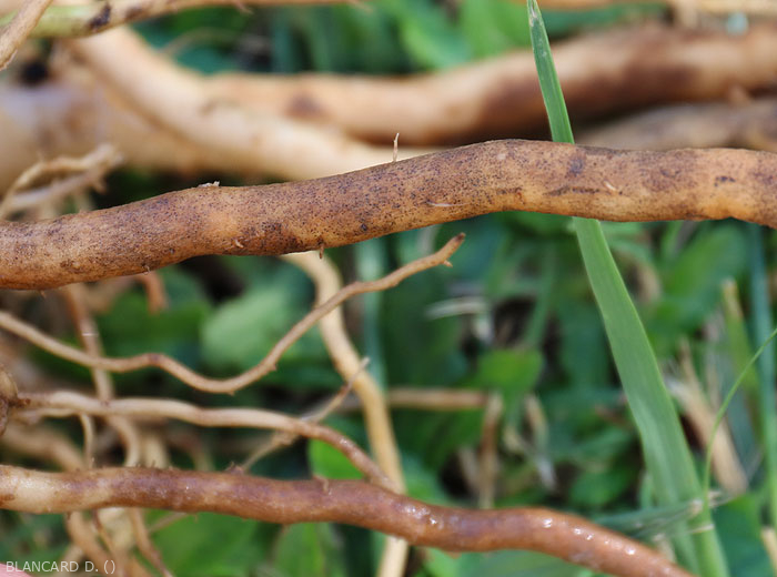 Organes attaqués: principalement les racines qui peuvent être entièrement colonisées.