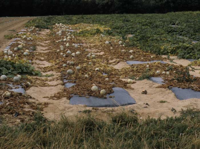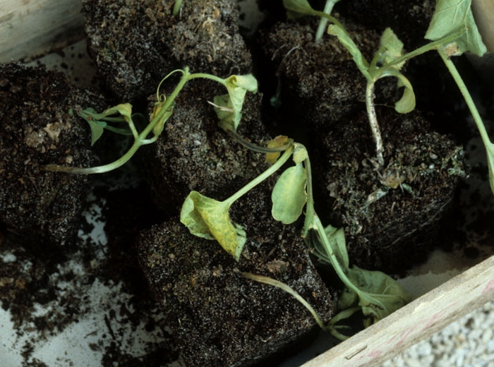 Des fontes de semis et des mortalités de jeunes plants peuvent se produire dans les pépinières fortement contaminées par Fusarium oxysporum f. sp. melonis (figure 1).