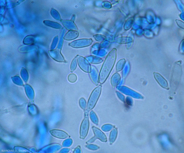 Rappelons aussi que les tissus jeunes (plantules, apex, jeunes fruits) sont particulièrement sensibles. Le cycle épidémique de la cladosporiose est relativement court, moins de 7 jours. Ainsi, de nombreux cycles peuvent avoir lieu au cours de la croissance des plantes, tant que les conditions climatiques sont favorables. Soulignons aussi que la cladosporiose peut évoluer au cours de la conservation des fruits à basses températures, par exemple entre 2 et 8°C.