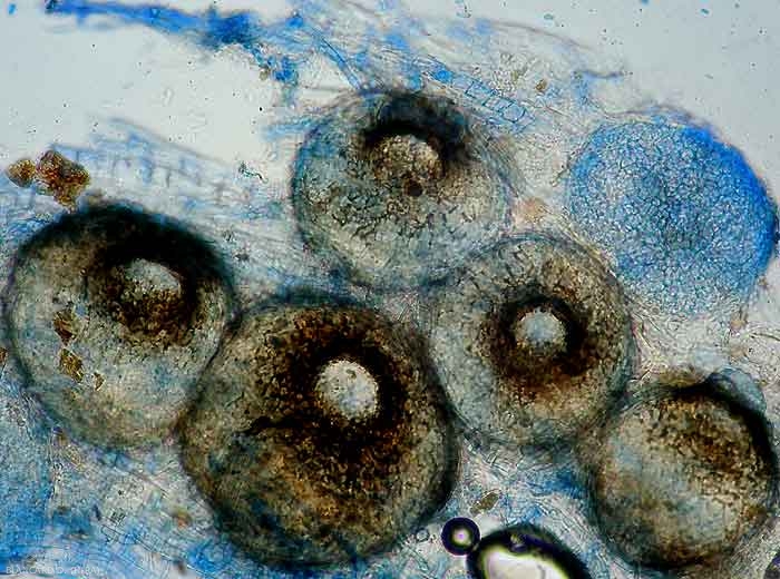 . Ces structures globuleuses brunes à noires à maturité produisent respectivement des ascospores et des conidies en grandes quantités, surtout lors de périodes humides. Ces spores constitueront essentiellement les inoculums primaires et secondaires rencontrés dans les cultures.