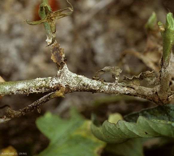 De rares amas mycéliens, des sclérotes, peu denses et de coloration brune, caractérisent la présence de <b><i>Thanatephorus cucumeris</i></b> (<i>Rhizoctonia solani</i>, "damping-off", "bottom rot").