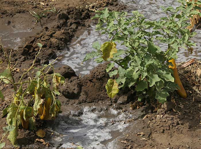 Les feuilles basses des plantes très affectées révèlent une sénescence et un dessèchement précoces. La taille des fruits et les rendements sont réduits. <b><i>Meloidogyne</i> spp.</b> (root-knot nematodes)