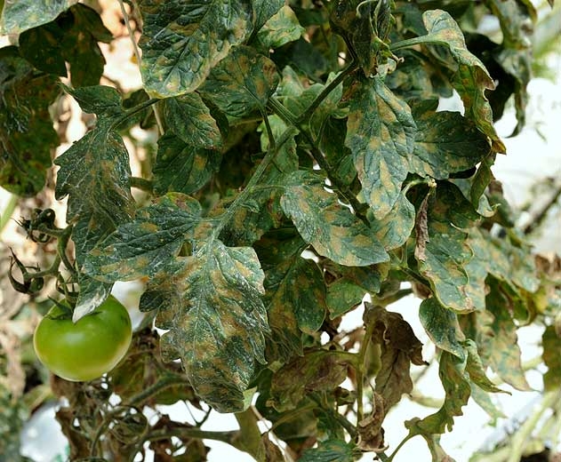 Questo fungo potrebbe colonizzare anche i piccioli , fusti e peduncoli dei frutti di pomodoro, in tutte le fasi di sviluppo.