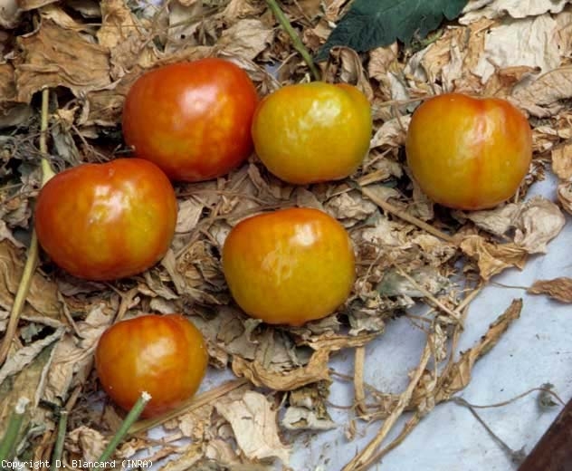 Dans la majorité des cas de viroses, d'autres symptômes sont visibles sur les autres organes aériens de la tomate et en particulier les feuilles.