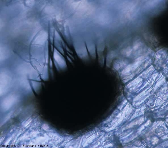L'évolution plutôt lente des taches et la présence des microsclérotes et des acervules sur ces dernières (figure 4) permettent d'identifier facilement cette mycose.