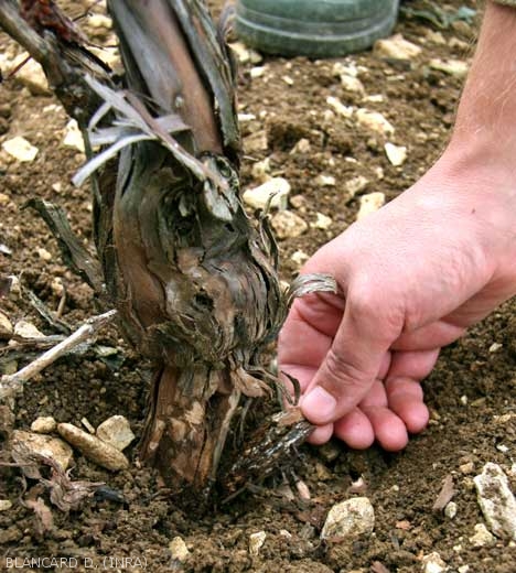 La presenza di legno morto nel terreno è il fattore chiave nel successivo sviluppo del marciume radicale in un nuovo impianto di vite. Questo legno morto può avere diverse origini: disboscamento per l'impianto di un nuovo vigneto, sradicamento di una vecchia vite, o alberi da frutto in mezzo agli appezzamenti, o alberi ai margini degli appezzamenti. Se le specie legnose sradicate vengono attaccate da marciume radicale, le radici malate, poco resistenti e quindi più difficili da estrarre dal terreno, rimarranno nel terreno e costituiranno una potenziale fonte di inoculo al momento della messa a dimora di piante giovani.
