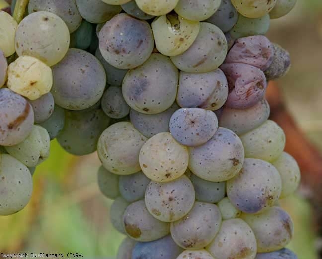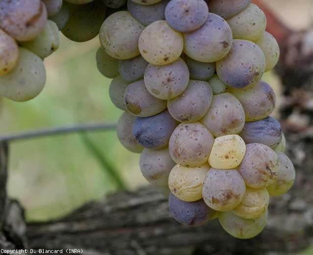 Prima di questo processo di botritizzazione , gli acini dell'uva sono dorati, con buccia spessa, leggermente pigmentata di marrone. Sotto l'azione della Botrytis , assumono quindi una tonalità marrone cioccolato, quindi diventano viola o addirittura blu notte prima di appassire. Diciamo allora che l'uva è "arrostita". Queste trasformazioni sono dovute ad una significativa perdita di acqua, ma anche ad un'intensa macerazione enzimatica della loro buccia. A titolo di esempio, ricordiamo che l'attività pectinasica osservata in una bacca marcia è circa cento volte maggiore di quella misurata in una bacca sana.