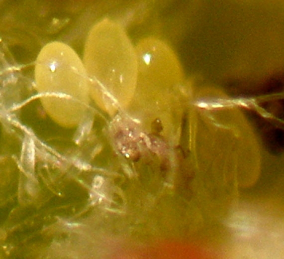 Le uova invernali (figura 1) di Daktulosphaira vitifoliae misurano meno di 0,3 mm, hanno forma ovale e colore giallo-verde, e sono più o meno lucide.