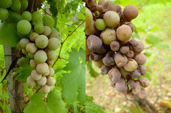 La Pilidiella diplodiella colpisce principalmente i grappoli ei rametti, raramente le foglie.
