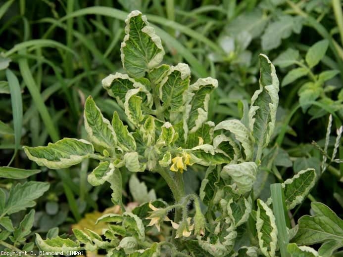 Generalmente le piante colpite dal virus TYLCV, un Begomovirus strettamente dipendente dal floema, vedono la loro crescita rallentata o addirittura bloccata (Figure da 1 a 4). Assumono un aspetto gracile e cespuglioso, a causa dello sviluppo di numerosi ascellari, e della riduzione della lunghezza degli internodi. In caso di infezioni precoci, rimangono nane e non producono frutti.