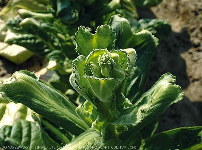 - espessamento e enrolamento do caule, e às vezes inchaço (figura 5)