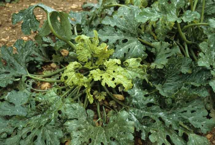 Muitas culturas também servem como reservatórios para este vírus, como espinafre e aipo no inverno e várias cucurbitáceas (melão, pepino, abobrinha, figura 1) e outras solanáceas (tomate, pimenta) no verão.
