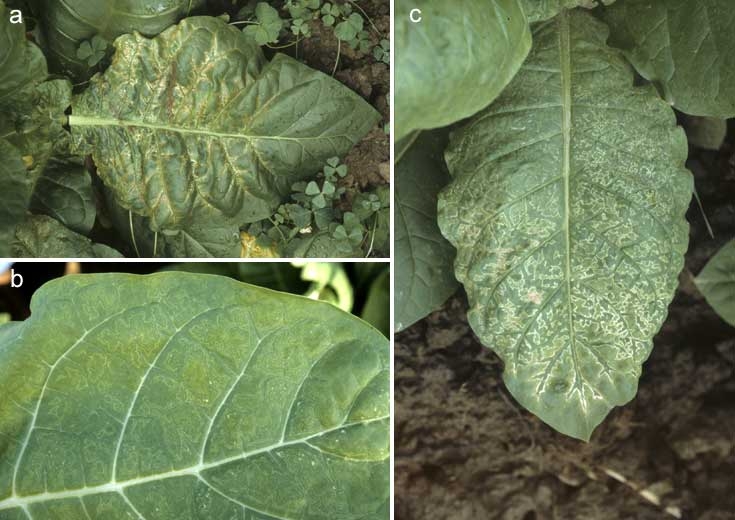 Além dos sintomas típicos do mosaico apresentados na introdução de mosaicos de folha, outros sintomas virais podem ser observados no tabaco (vários exemplos por imagens):