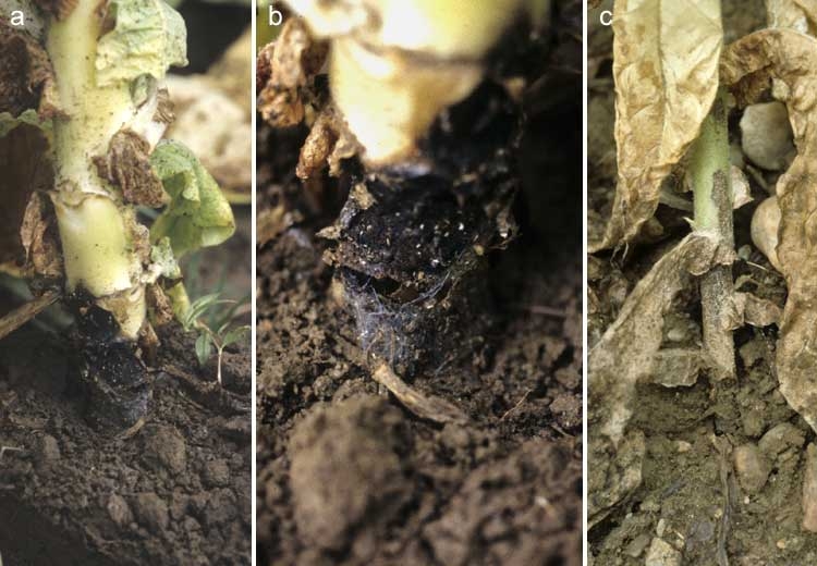 Se a contaminação ou dano não for detectado no viveiro e as plântulas infectadas forem plantadas, um cancro de coloração castanho avermelhado (figura 3 e 4) ocorre dentro de poucas semanas após o plantio. Quando o cancro se expande, as plantas afetadas murcham, de repente ficam amarelas e secam.