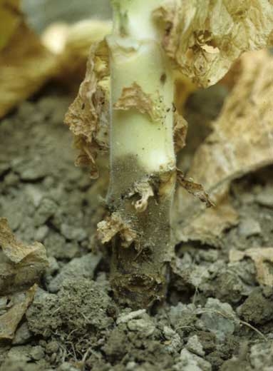 Essas lesões afetam os órgãos subterrâneos do tabaco, resultando em murchamento, amarelamento e secagem de várias folhas em toda a planta no final do ciclo da doença.