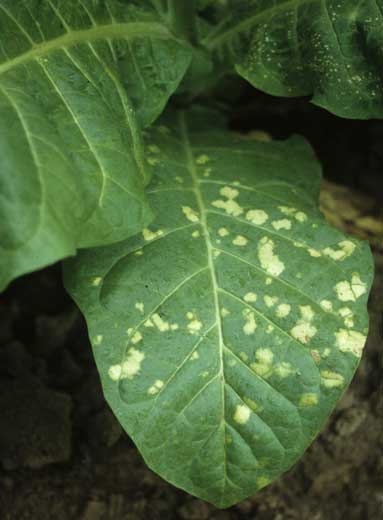 As fotos desta página resumem as várias manchas amarelas a brancas (figuras 1 a 4) causadas por alguns produtos químicos, inadvertidamente ou não, aplicados no tabaco (lesões químicas).