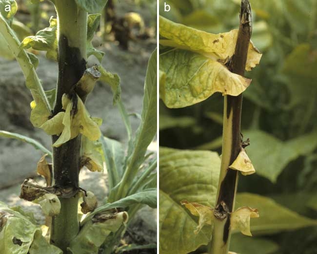 Pectobacterium spp. são onipresentes e presentes em muitos solos, especialmente em detritos de plantas, onde eles facilmente sobrevivem por vários anos. Eles também são encontrados na superfície foliar do tabaco, fato que reforça a ideia de que essas bactérias são relativamente comuns no ambiente do tabaco. A semente é uma fonte significativa de inóculo (figura 1). Essas bactérias também são relativamente polífagas e provavelmente sobreviverão em um grande número de hospedeiros.