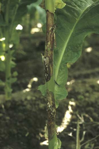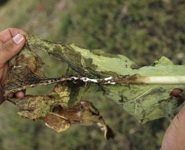 A mancha de folha de esclerotinia é uma doença comum na França. Infecta principalmente o caule e as folhas de tabaco.