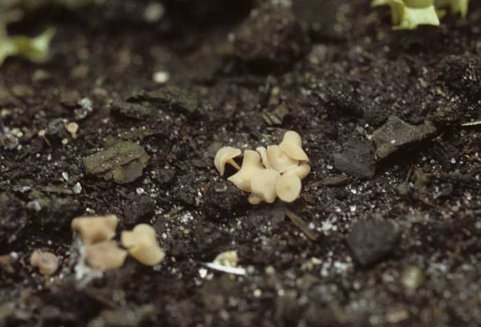 Apotecio (figura 4), o forma sexual (telemorfo), do fungo às vezes ocorrem no campo.