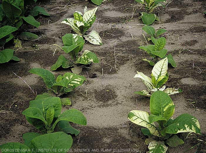 Note-se que existem diferenças na suscetibilidade no que diz respeito à ação de pesticidas. Portanto, não é surpreendente observar esse fenômeno se você cultivar várias culturas. Além disso, aconselhamos a observar todas as ervas daninhas ainda presentes na lavoura, ou outras culturas nas proximidades, que podem sofrer a mesma lesão química e, portanto, apresentar os mesmos sintomas. Se este for o caso, confirma parcialmente a hipótese da lesão química. De fato, com exceção de alguns vírus e Stolbur, a grande maioria das doenças parasitárias do tabaco não pode ser observada em ervas daninhas e é principalmente específica para o tabaco ou Solanaceae.