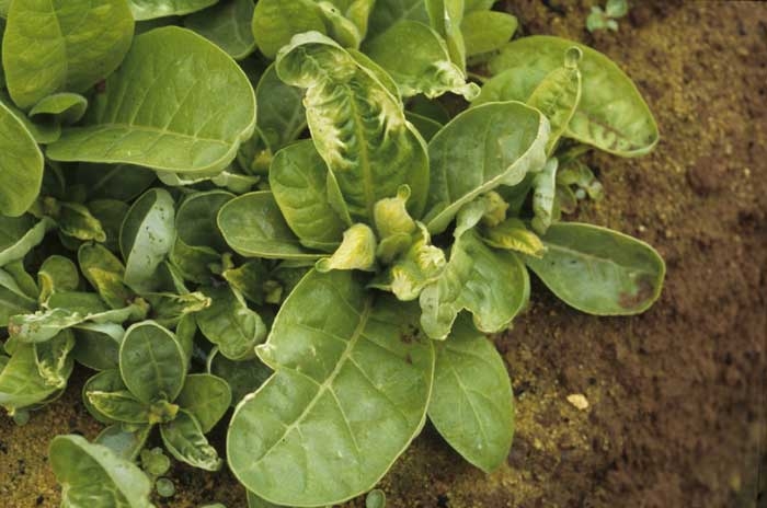 As mudas são altamente sensíveis ao frio; as folhas jovens afetadas são parcialmente ou completamente translúcidas e tendem a se tornar em forma de colher (figura 1). Subsequentemente, as folhas afetadas podem ter seu formato  distorcido e mostrar descolorações (figura 2). Deve-se notar que as variedades de tabaco não apresentam a mesma sensibilidade ao frio (figura 3).