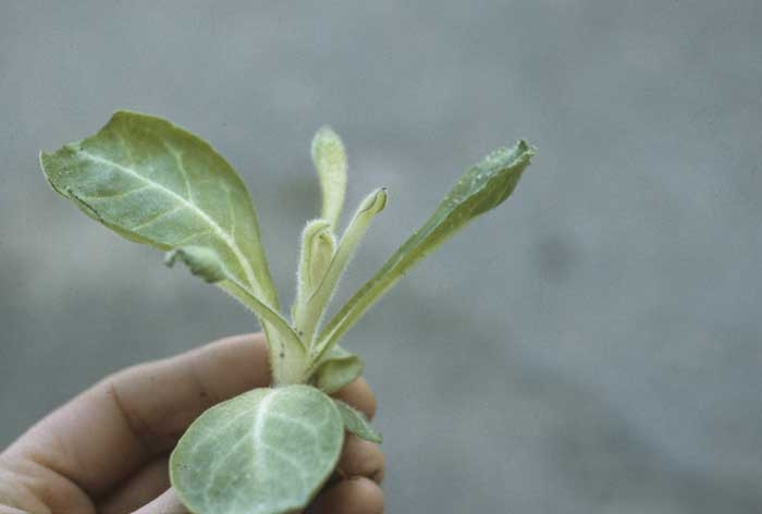 De tempos em tempos, em bandejas flutuantes (float), pode-se observar uma redução no crescimento de mudas devido à irrigação excessiva e/ou uso de água com altos níveis de bicarbonato de cálcio (figura 1) ou pobre em elementos minerais (N, P, K ...) (figura 2). Por outro lado, um aumento na concentração de sais solúveis pode ocorrer na superfície do solo, especialmente em canteiros pouco irrigados. Sob essas condições, as mudas ficam amarelas, tornam-se marrons ao longo da lâmina da folha e secam. Várias regas consecutivas no topo geralmente resolvem esse problema.