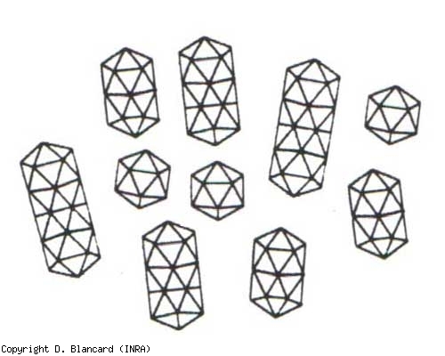 Os virions têm uma forma variável. As menores são isométricas, com diâmetro de 18 nm, as demais são baciliformes; seus comprimentos variáveis são 29, 38, 49 e 58 nm.