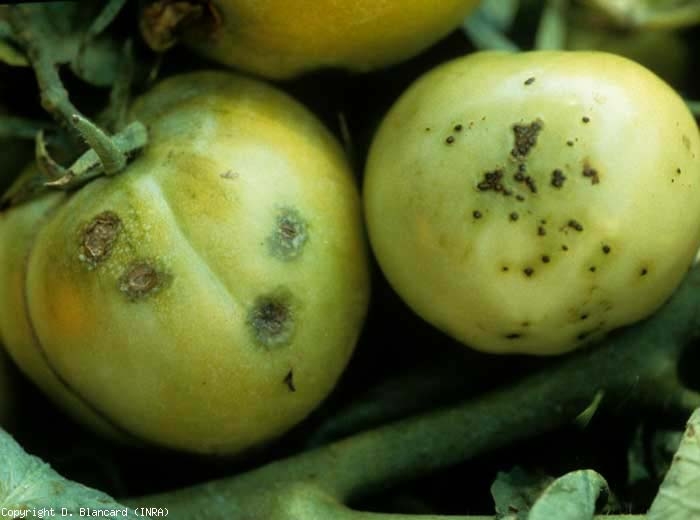 Les fruits montrent de minuscules altérations noires particulièrement caractéristiques, assimilables à des chiures de mouche (figure 3). Pour des informations complémentaires sur cette bactérie, vous pouvez consulter la fiche Pseudomonas syringae pv. tomato .
