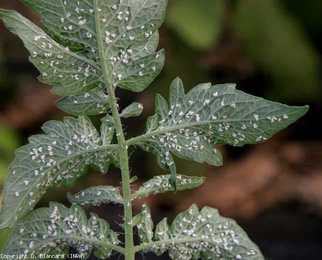 Duas moscas-brancas bastante polífagas são prejudiciais ao tomate na França: Trialeurodes vaporariorum (Westwood) e Bemisia tabaci (Gennadius). Esta última espécie é representada (em algumas populações) por um biótipo-B particularmente formidável, também conhecido como Bemisia argentifolii (Bellows & Perring), que se desenvolve em mais de 900 hospedeiros. Estas moscas-brancas pertencem à ordem Hemiptera e à família Aleyrodidae. O T. vaporariorum , também chamado de "mosca-branca-do-estufa", é nativo da América Central e tem se espalhado por muitos anos na Europa, principalmente sob abrigo. B. tabaci , a mosca-branca do tabaco, descrita pela primeira vez na Grécia, vem surgindo há várias décadas em várias regiões do mundo (desde 1988 na França). Tornou-se problemático em todos os lugares por pelo menos três razões: