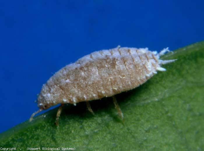 Cochonilhas ( cochonilhas ) são insetos sugadores pertencentes à ordem Hemiptera e à superfamília Coccoidea. O tomateiro é especialmente acometido por algumas cochonilhas pertencentes à família Pseudococcidae. As cochonilhas dessa família não possuem escudo córneo (uma espécie de carapaça), e o corpo geralmente é coberto por uma secreção branca e farinhenta. Eles também têm filamentos cerosos laterais claramente visíveis na periferia do corpo, e às vezes pode ser notada uma secreção algodonosa contendo os ovos no final do abdômen. Estamos interessados ​​aqui principalmente em Pseudococcus viburni (Signoret) (sin. Pseudococcus affinis [Maskell]) que foi introduzido na Holanda no início de 1990, e começou a ser observado na França a partir de 1997. Esta cochonilha é encontrada agora em uma número de abrigos espalhados por várias regiões de produção francesas.
