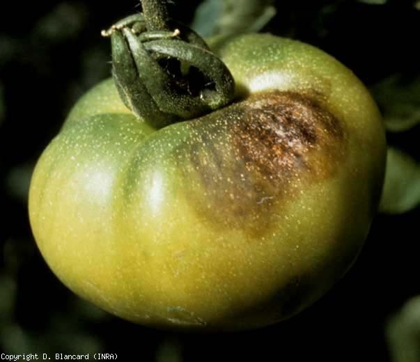 Os frutos muito características (figuras 10 a afetados no estágio inicial apresentam manchas marrons 13). Eles são frequentemente irregulares . Nesse caso, a extensão do marmoreio é bastante lenta e sua margem irregular. Se os ataques ocorrerem mais tarde, as áreas marmorizadas são mais homogêneas e frequentemente distribuídas em círculos concêntricos recortados. Podem ser confundidas com as causadas por outras Phytophthora , principalmente P. nicotianae .
