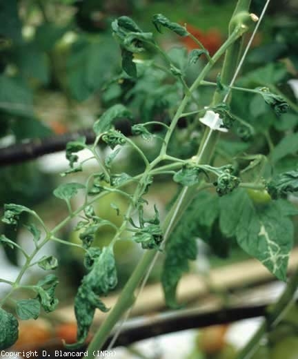 Várias mutações genéticas ou aberrações cromossômicas (na composição dos cromossomos ou em seu número) ( anormalidades genéticas ) são responsáveis por alterações na cor e/ou forma dos folíolos e folhas do tomate. Quanto às deformações foliares, observam-se folíolos mais ou menos "amarrotados", enrolados em relação ao seu eixo ou ao seu plano; os tecidos são mais espessos (Figuras 1 a 4). Também deve ser notado que as plantas são frequentemente estéreis (daí o nome “ mutantes estéreis ”) e que frequentemente assumem uma aparência espessa. Vários tipos de plantas estéreis podem aparecer na cultura (figuras 5 e 6). O tipo mais comum ocorre como plantas com folhas reduzidas, distorcidas e muitas vezes enroladas, com muito menos pelos longos nas hastes, folhas e hastes das flores do que as plantas normais. Outro tipo se manifesta como plantas mais vigorosas com folhagem mais escura e folíolos mais largos; o caule e os tecidos costumam ser mais espessos (esse tipo é conhecido como " plantas de touro ”pelos anglo-saxões).