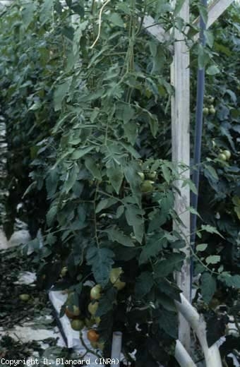 Esta doença não parasitária, também chamada de " prateamento ", "quimera", "prateamento da cabeça" quando afeta as folhas do ápice do tomateiro, é relativamente bem conhecida pelos cultivadores de estufa (figuras 1 e 2).