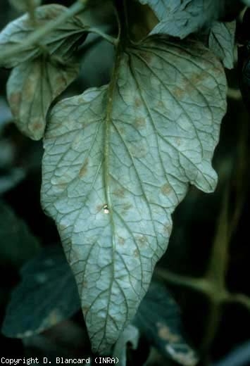 Passalora fulva é um fungo parasitário quase predominantemente foliar . Provoca manchas verde-claras a amarelo-claras , de contornos difusos, localizadas preferencialmente nos folíolos das folhas inferiores (figura 1). Uma penugem, inicialmente esbranquiçada e depois arroxeada a castanho-oliva, cobre gradualmente as manchas na parte inferior da lâmina foliar (figura 2). Eventualmente, os tecidos no centro das manchas ficam marrons, tornam-se necróticos e secam à medida que as folhas se enrolam. Em condições muito favoráveis, P. fulva também esporula na parte superior da lâmina, que cobre mais ou menos (figura 3). A doença então se espalha para as partes superiores das plantas, enquanto todas as folhas velhas secam completamente e às vezes caem. O caule também pode ser afetado .