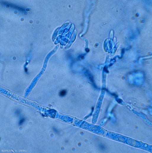 Este fungo produz clamidósporos , microconídios (figura 2), até mesmo macroconídios (figura 3), nos vasos e nos tecidos colonizados e alterados. Pode se disseminar a distâncias maiores por meio de sementes e plantas contaminadas, por substratos, água, por máquinas agrícolas que circulam de um canteiro para outro e cujos pneus estão carregados com partículas de solo e restos vegetais. Poeiras do solo contendo clamidósporos são facilmente espalhadas por correntes de ar, bem como por respingos de água.