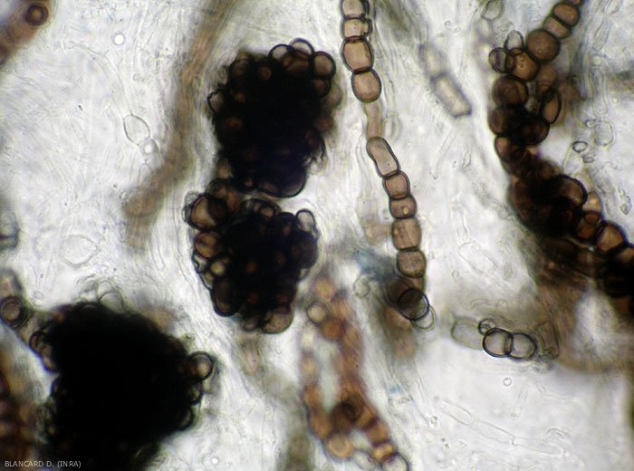 Verticillium dahliae é um fraco competidor no solo, não possuindo capacidades saprofíticas que lhe permitam manter-se facilmente neste último. Apesar disso, a sua conservação é assegurada por fragmentos miceliais ainda presentes nos restos vegetais, mas sobretudo pelos seus microescleródios (figuras 1 e 2) que a perpetuam há mais de quinze anos. A sua elevada polifagia permite-lhe atacar muitas plantas hospedeiras cultivadas (tomate, pimentos, batatas, cucurbitáceas, alcachofras, alface, couve, morangos, rosas, ásteres, crisântemos, tabaco, algodão, etc.) que promovem sua multiplicação e conservação. De facto, encontramos neste fungo muitas estirpes com potencial parasitário variável permitindo-lhes atacar gamas mais ou menos alargadas de hospedeiros.