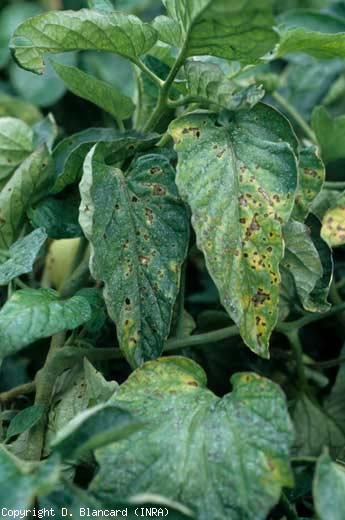 Apenas os sintomas nos frutos permitem diferenciar cisco de sarna bacteriana: Pseudomonas syringae pv. tomate causa pequenas manchas pretas , principalmente em frutas verdes (Figuras 5-7). Estes são muito superficiais, ligeiramente elevados e têm um diâmetro da ordem de um milímetro (menos de 3 mm no máximo). Um halo úmido e verde-escuro às vezes os envolve. Essas manchas pretas persistem em frutas vermelhas maduras.