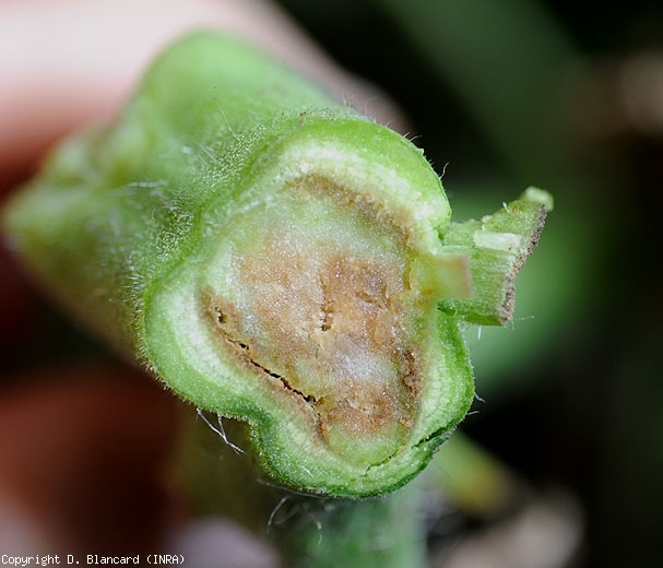 Transmitida por sementes , a bactéria já pode aparecer no viveiro. As mudas podem morrer rapidamente, permanecer anãs ou parecer saudáveis. Neste último caso, a contaminação mais terrível e latente pode se manifestar mais tarde, após o plantio e durante o cultivo.