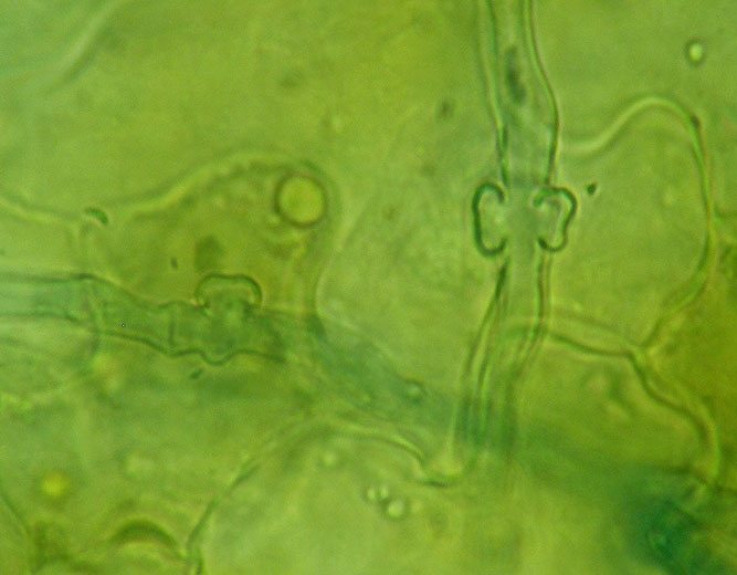 Os conídios de P. neolycopersici certamente garantem as contaminações primárias . Uma vez em contato com o hospedeiro, germinam rapidamente em poucas horas se as condições ambientais forem favoráveis a eles. Eles formam um apressório , então penetram diretamente nas células epidérmicas, desenvolvendo haustórios ( figura 1). Estes últimos desempenham o papel de sugadores permitindo a coleta dos elementos necessários para o crescimento do micélio do fungo.