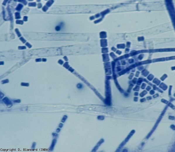 Produz lesões úmidas e gordurosas que aparecem ao nível das feridas ou da cicatriz peduncular dos frutos. Essas lesões se desenvolvem rapidamente nos frutos maduros, cuja epiderme acaba se partindo, fazendo com que o suco vaze. Um muco esbranquiçado e denso às vezes recobre os tecidos localmente (figura 1); corresponde ao desenvolvimento de colônias de G. candidum . Neste último, micélios compartimentalizados contendo artrósporos em cadeia que eventualmente se desarticulam são facilmente observáveis ao microscópio de luz (figura 2).